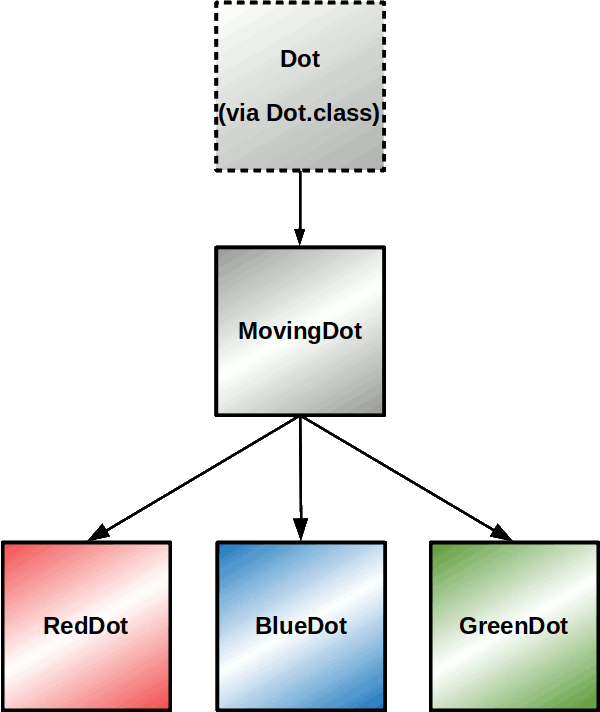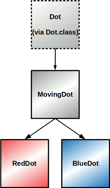 Practice your inheritance skills ... AGAIN! This time, using the MovingDot class as the base/parent class, define two new class called RedDot and BlueDot.