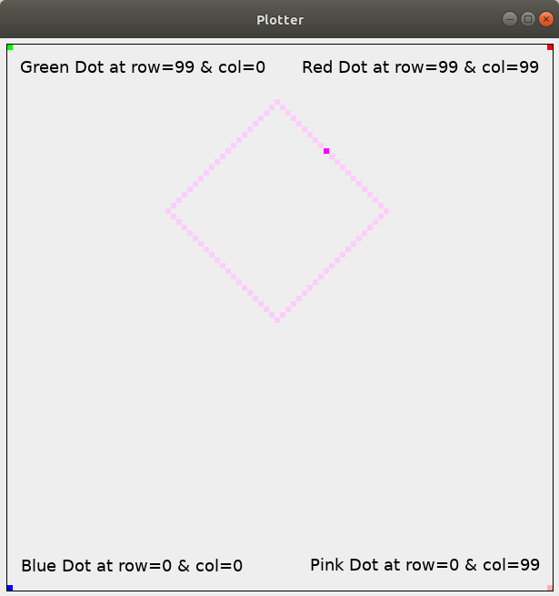 Feel free to look, run, and play with DotTest.java all you want. It is provided so that you can see an example of the Dot class in use and to provide context for how Dot positions map to the Plotter.