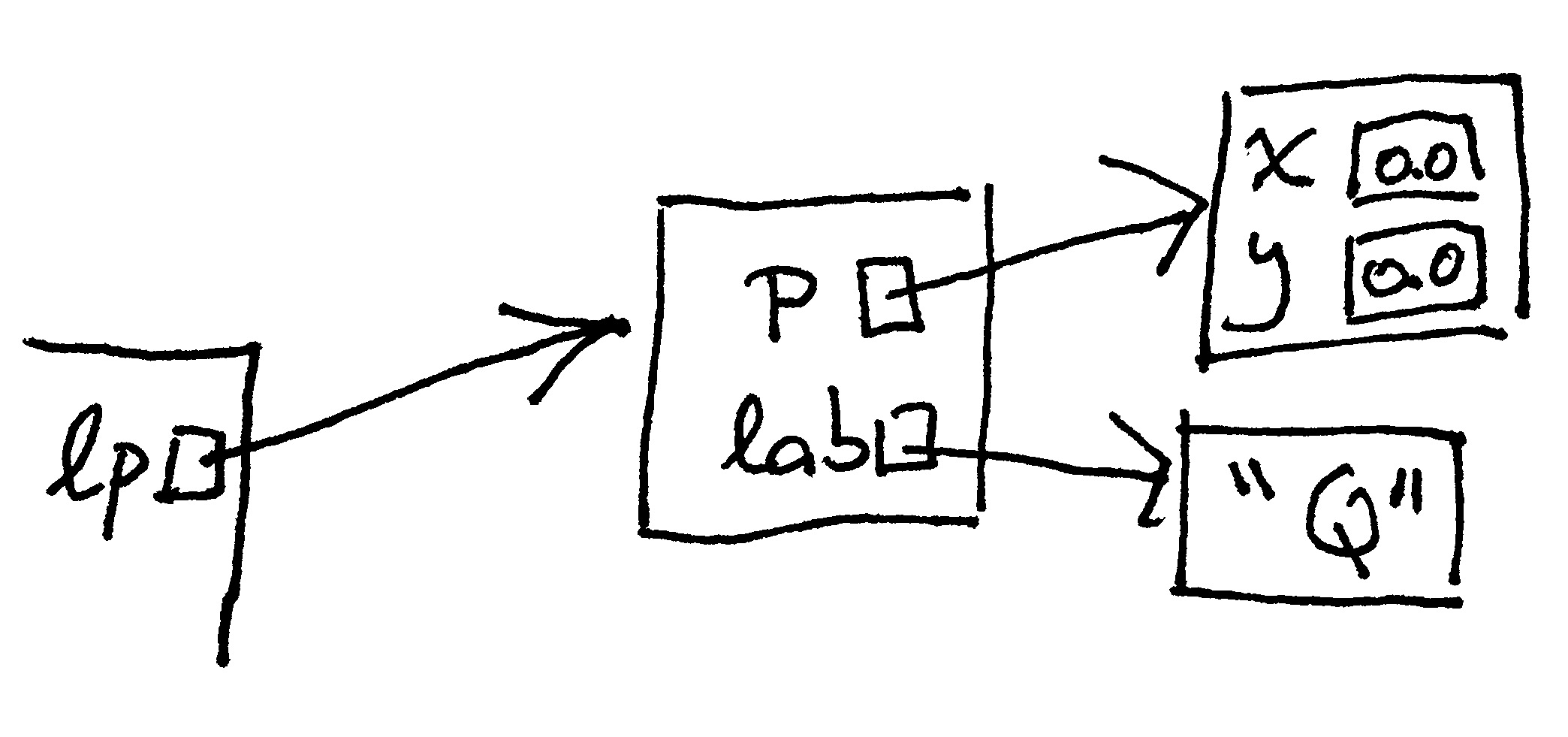 What we would really like to do to solve our problem is to go add a "label" field to the class Point, so that when we had chosen the three points that defined the triangle of largest area, we could simply write out their labels. However, we can't modify the class Point: first, I said we couldn't, second, what about all those situations in which we want to have points without labels? So we have to create a new class that somehow combines a point and a label.
