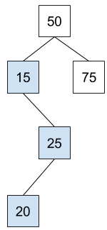 However, changing the order of the values to [50, 15, 25, 75, 20] would result in the following Tree structure: