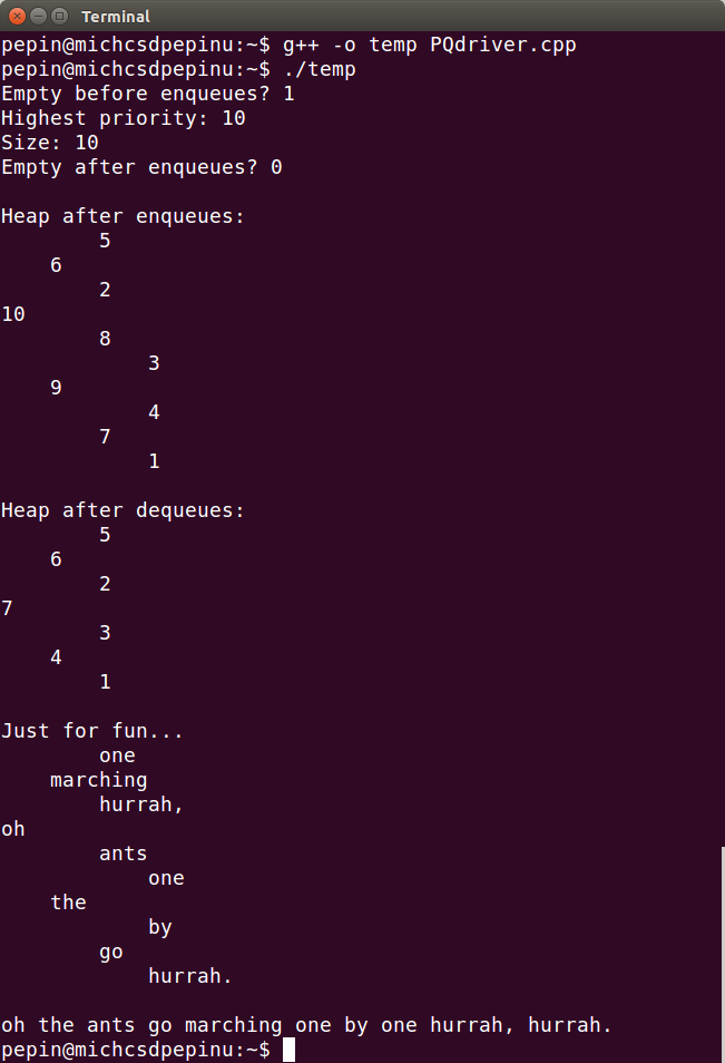 Here's what your output should look like using an unmodified version of PQDriver.cpp: